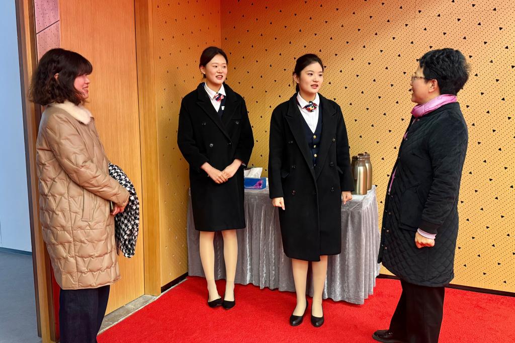 会议期间,礼仪志愿者们分布于各个关键岗位。从引导参会人员入场就座,到协助维持现场秩序,再到提供细致周到的茶水服务,她们始终坚守岗位,以优雅的姿态、亲切的微笑和专业的服务,展示了自己的良好精神风貌。