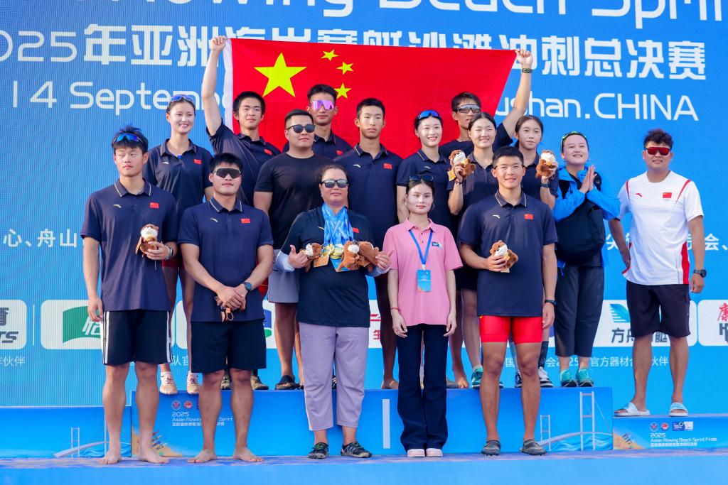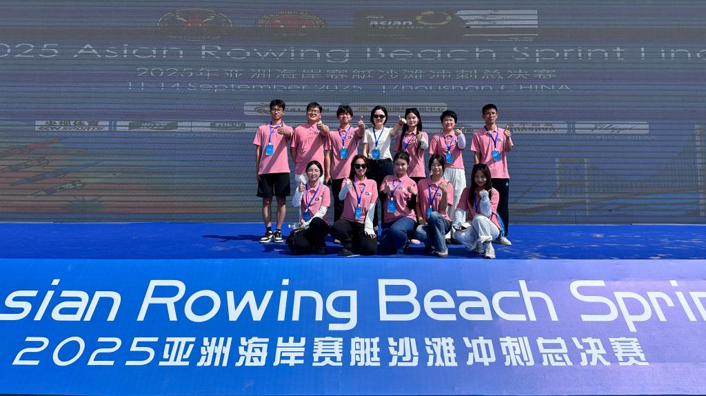 9月11日至14日,亚洲海岸赛艇沙滩冲刺总决赛在浙江舟山朱家尖南沙成功举办。本次赛事由亚洲赛艇联合会主办,中国赛艇协会与舟山市人民政府共同承办,吸引了来自中国、日本、科威特、新加坡、阿联酋、泰国、中国香港等11个国家和地区的60名运动员及31名队伍官员参与。作为亚洲范围内水平最高、规模最大的海岸赛艇沙滩冲刺赛事之一,此次赛事不仅是竞技的舞台,更是推动体育与文化、旅游深度融合的重要平台。在这场高规格的国际赛事中,我校21名师生组成的双语志愿服务团队以出色的语言能力、专业的服务水平和高度负责的态度,赢得了组委会与各国参赛队伍的一致好评。