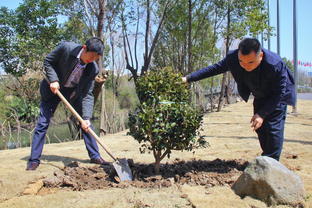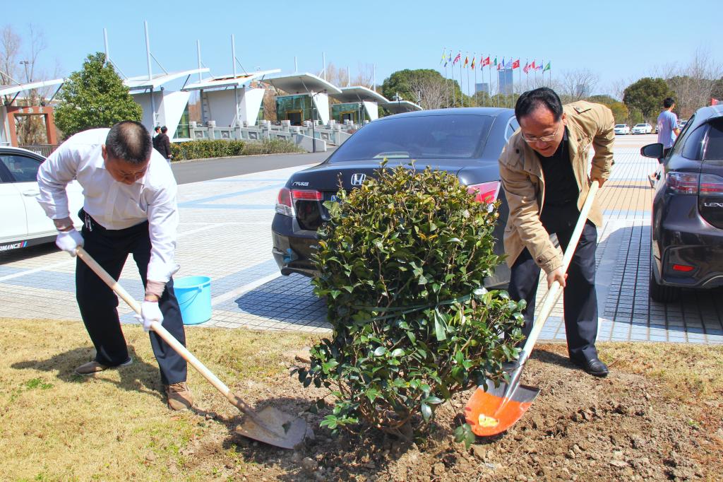 配合学校绿色校园整体布局,后勤产业处提前准备,计划在学校海智楼北面种植一片茶梅,为校园增添一抹新绿。苏为泽、吴中平、孔志光、刘相等校领导和多名师生代表参加。