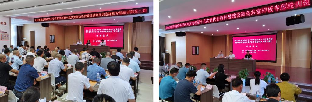 7月18日—8月26日,由中共舟山市委组织部、舟山市农业农村局主办,舟山市乡村振兴学院承办的村党组织书记学习贯彻省第十五次党代会精神暨建设海岛共富样板专题轮训班圆满落下帷幕。本次轮训采用全程封闭管理,通过专题讲座、视频教学、现场教学、交流研讨相结合的方式开展,全市265名村书记分三期参加此次轮训。整个轮训班的课程设置、师资评价、培训组织、后勤服务都深受学员一致好评,综合评价满意度近100%。