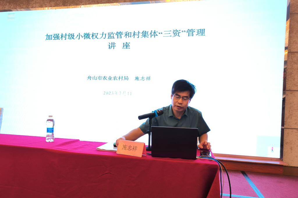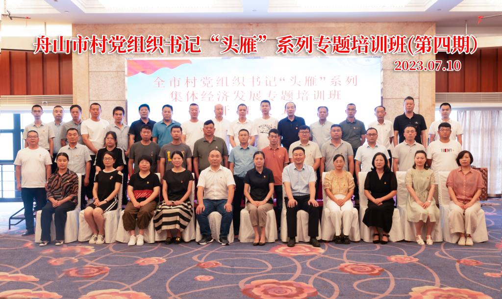 为进一步提升渔农村基层组织建设水平和村干部队伍的整体素质,增强村干部带动发展和带领群众致富的能力,助推全市农业农村高质量发展,710-14日,由舟山市委组织部、舟山市农业农村局主办,舟山市乡村振兴学院承办的全市村党组织书记“头雁”系列第四期集体经济发展专题培训在定海举行。市农业综合行政执法队专职副队长、市乡村振兴学院副院长刘丽,我校党委委员、副校长、市乡村振兴学院执行副院长夏志刚出席开班仪式,来自各县区、管委会共计40名村党组织书记参加本次培训,开班仪式由舟山市乡村振兴学院副秘书长兼培训部部长苏峰主持。