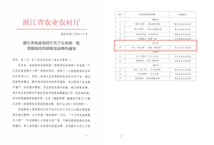 为深入贯彻落实习近平总书记关于“三农”工作重要论述、《中共浙江省委办公厅浙江省人民政府办公厅关于高水平推进乡村人才振兴的实施意见》和新时代浙江“三农”工作“369”行动等有关精神和部署要求,为进一步提升渔农村基层组织建设水平和村干部队伍的整体素质,增强村干部带动发展和带领群众致富的能力,助推全市农业农村高质量发展,2023年2月以来,舟山市乡村振兴学院多次走访舟山市委组织部、市农业农村局等部门,就2023年村党组织书记培训开展专题调研,通过与相关职能处室反复磋商,六易其稿,确定2023年舟山市村党组织书记“头雁”系列专题培训方案。