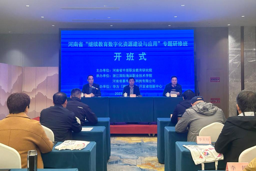 11月14日-17日,由河南省中原职业教育研究院主办,我校承办的“继续教育数字化资源建设与应用”专题研修班在定海举行。河南省中原职业教育研究院院长宋正武,校党委委员、副校长夏志刚,以及华北水利水电大学、中原工学院、南阳师范学院、中原科技学院、平顶山工业职业技术学院等30余位继续教育学院院长、书记和骨干人员参加培训开班仪式,仪式由东海教育学院院长苏峰主持。