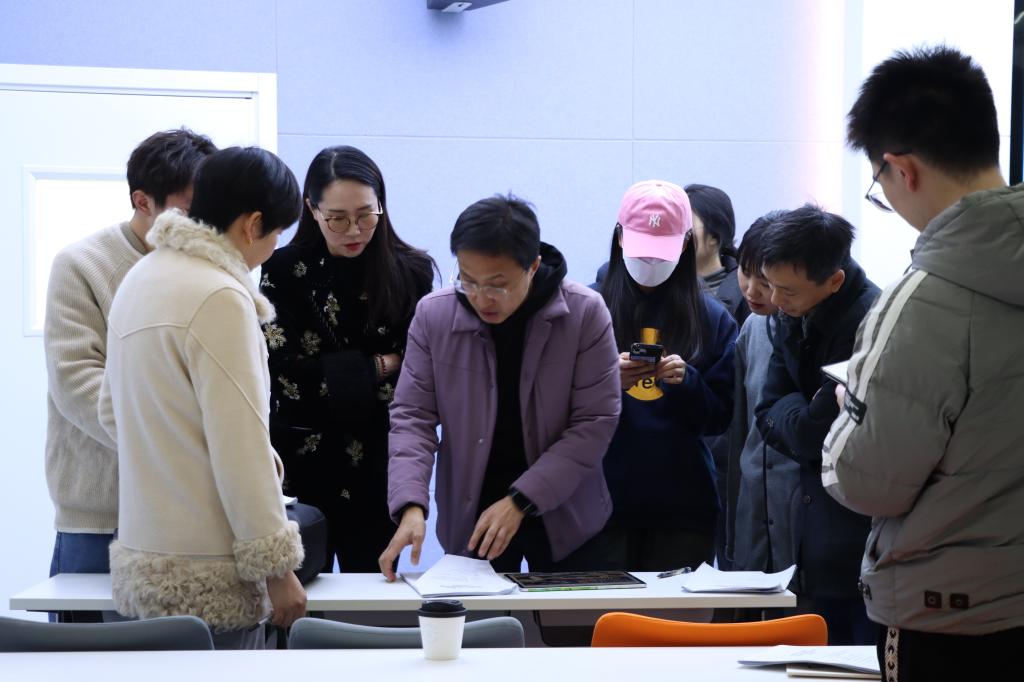 随后,祝捍皓教授逐一与参赛团队进行面对面交流,他凭借丰富的经验和专业的视角,精准地分析每个项目的优势和不足,并针对性地提出具体的改进建议。在专家的悉心指导下,选手们对自己的项目有了更深入的理解和新的认识,为项目的进一步完善和提升奠定了坚实的基础。